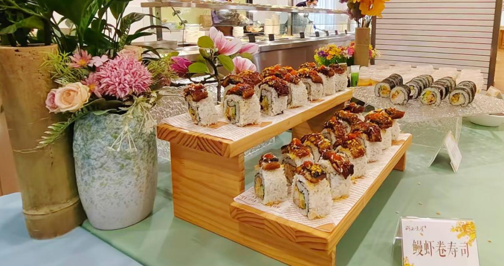 从经典风味到创意融合,从海味鲜醇到家常暖心,菜品阵容堪称 “神仙打架”:当季肥美的熟醉大闸蟹,花雕酒浸制的螺类、虾蛄组成的 “小海鲜拼盘”,临海麦虾汤与日式味增汤跨界同台,一碗暖胃,一碗鲜爽;纯手工制作的东阳麦穗饼,鳗虾寿司卷则软糯鲜甜,兼顾传统与新潮;现烤炙烤羊排滋滋冒油,肉香扑鼻,湖州臭豆腐包外酥里嫩,香气独特让人欲罢不能;还有地气十足的火锅小宴,咕嘟咕嘟的热汤里盛满时令鲜蔬与肉类,驱散秋日微凉。